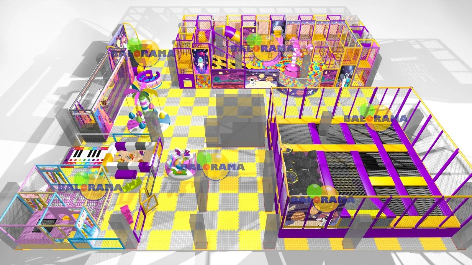 The Softplay Space Playground is 350 m². It's a vibrant ocean-themed softplay playground.